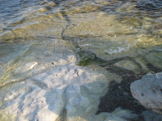 Havet sköljer in över kalkstensplattor från silurtiden, för mer än 400 miljoner år sedan.