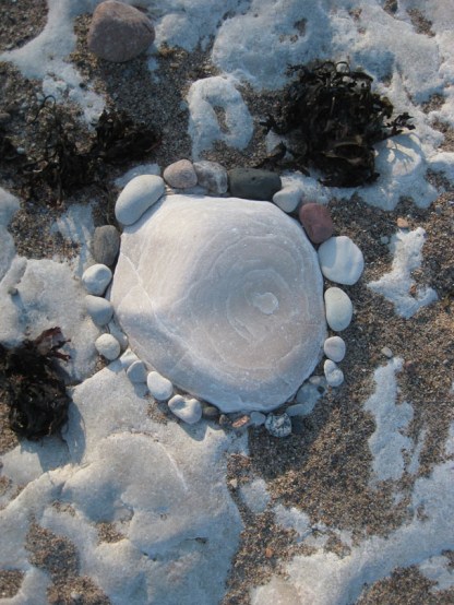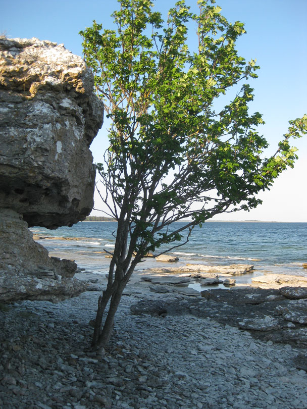 Båtvrak, skulpturalt i sin bedagade skönhet.En oxel tål hårda vindar och kan växa utan nästan någon näring alls.Närmaste granne är Lettland, betydligt närmare än det svenska fastlandet.