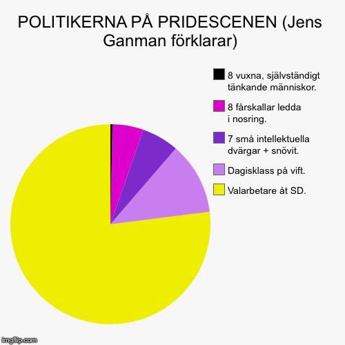 I samband med årets Pridevecka var partiledarna i sjuklövern inbjudna av vänsterextrema och kulturmarxistiska RFSL (Riksförbundet för sexuellt likaberättigande) till ett jippo i Kulturhuset i Stockholm. Givetvis kom de samfällt, som skjutna ur en kanon. För att tacka nej till att ställa upp i Pridejippon måste man ha av media godtagbara skäl som dubbelsidig malaria, minst.