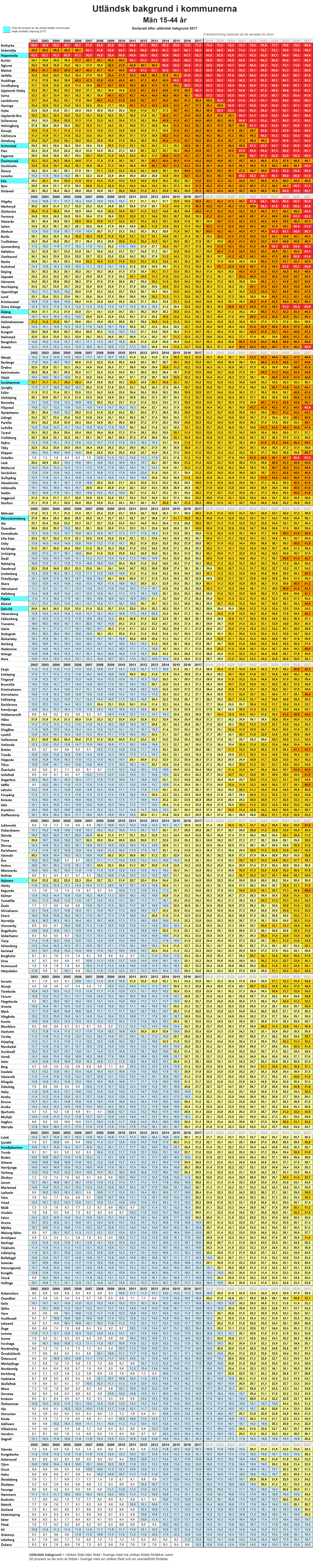 OBS! Tabellen är gjord efter grad av utländsk bakgrund i kommunerna, alltså inte i bokstavsordning.