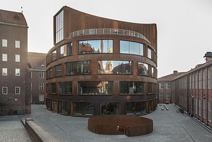 Fören på en Atlantångare på drift? Eller en tekopp i megaformat? Nej, detta är resultatet av att arkitektbyrån White fritt fått hänge sig åt sina dekonstruktivistiska impulser när de fick uppdraget att rita Humanistiska Teatern i Uppsala. Byggnadens koniskt välvda fasad är gjord av lackerad bronsfärgad aluminiumplåt, med perforering utformad av konstnären Ann Lislegaard.