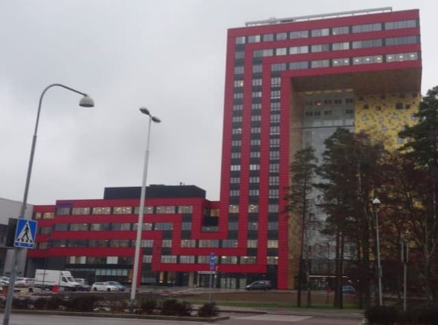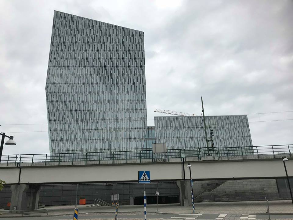 Så hur gick detta till? Högskolan hade redan nybyggda lokaler, men en tidigare rektor fick för sig att studenterna kräver havsutsikt från lärosalarna. Därför har de byggt nya lokaler och övergivit de gamla. Och kommunen lägger sig naturligtvis platt som en dörrmatta, eftersom Linnéuniversitetet är en stor tillgång för staden. En av de många disparata klossarna är Hus Vita som just blivit färdigbyggt.”