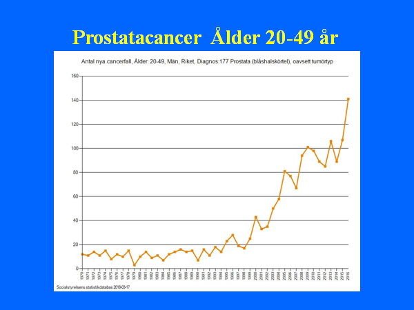 Prostatacancer är Sveriges vanligaste cancersjukdom. Svenska män drabbas mycket oftare än män i övriga Europa. Varje dag får cirka 25 män i Sverige veta att de har prostatacancer. Dödligheten i prostatacancer i Sverige är dubbelt så hög som i USA och Kanada, länder som annars brukar utmärka sig för en mer ohälsosam livsstil än vår. I asiatiska länder som Japan och Korea är förekomsten av prostatacancer mycket lägre.