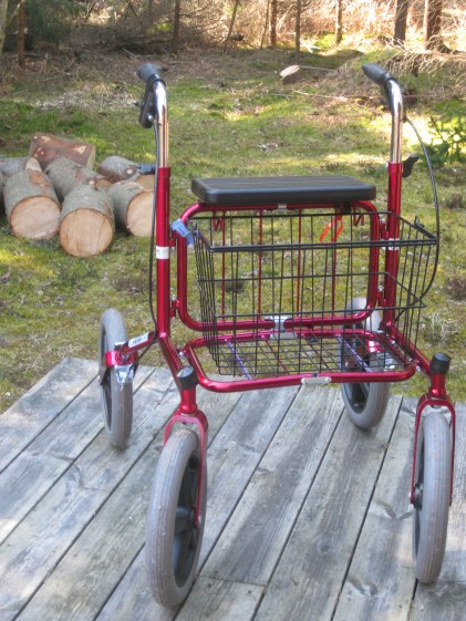 Rollatorn – jag närmar mig den tvehågset. Undersöker den misstänksamt. Som om den vore ett okänt djur.
