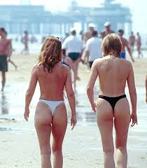 En dag ser jag ett par tjejer i 16-17-årsåldern i den lilla matbutiken. Antagligen kommer de direkt från stranden. Den ena är, välvilligt uttryckt, hyfsat klädd. Den andra har nakna, brunbrända skinkor framförda i full frihet. Skinkorna är endast åtskilda av ett minimalt snöre. Med sina skinkor dokumenterar hon ett ihärdigt solande, och hon gör det endast iförd stringtrosor. Bland matdiskarna.