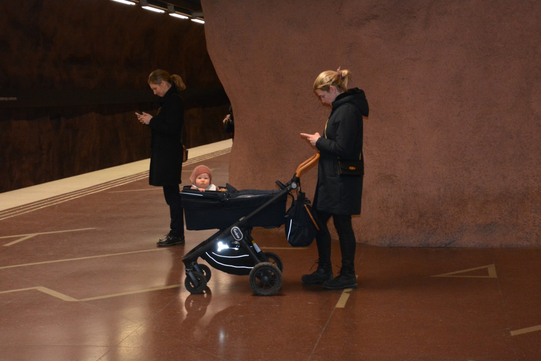 Mamman är närvarande i sin mobiltelefon. Inte med sitt barn. Foto: Stefan Pettersson, Nya Tider.