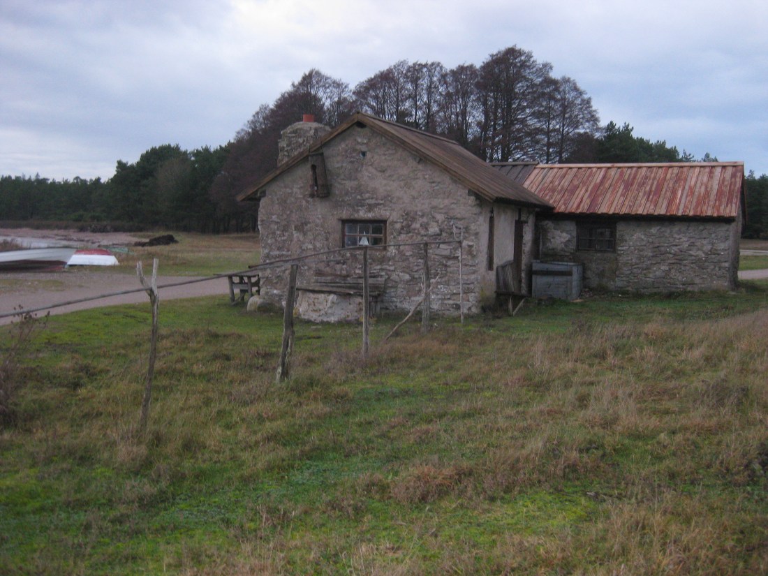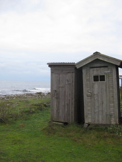 I det lilla fiskeläget hukar raden av vindpinade utedass som en sista utpost mot havet.