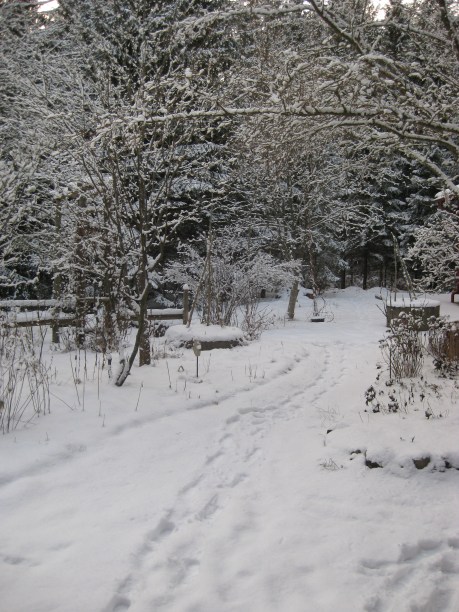 I snön ser jag spåren av rådjur, harar, kaniner och en och annan stannfågel. De klarar sig utan rollator. På kvällarna kommer ibland räven fram till huset och ger upp sitt märkliga skall som betyder att den gärna vill ha en matbit i kylan.