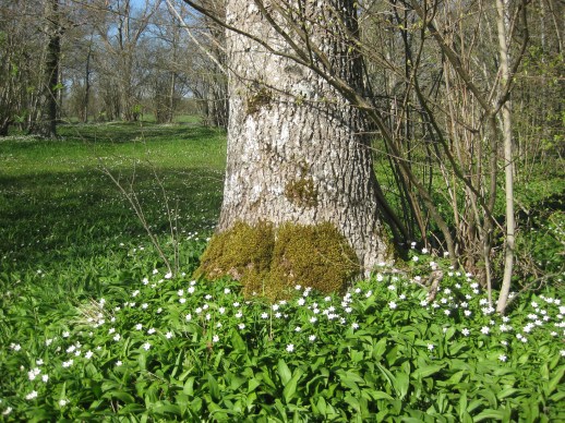 Just den här tiden varje år brukar jag ta mig till ett av de vackra ängen som jag har turen att bo i närheten av. Ängen är en mycket speciell form av landskap, en grönskande sal med väggar och tak av buskar och lövträd och marken täckt av en matta av gräs och vitsippor. Det är så vackert att man försätts i ett tillstånd av salighet.