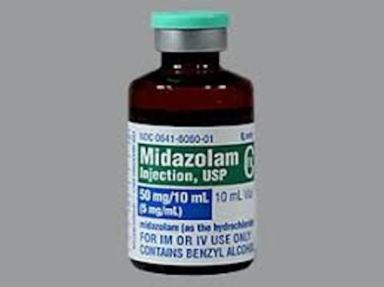 Midazolam, en injektionsvätska som tillhör gruppen bensodiazepiner, har enligt uppgift i Fass starkt sederande (lugnande), dämpande och sömngivande effekt. Preparatet ges intravenöst för sedering bland annat i samband med intensivvård.