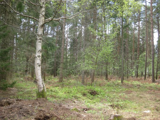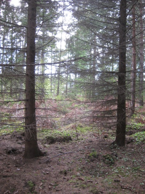 Jag har en vision. Den här biten skog – en liten prick på jorden – ska bli välskött. Som en skogspark. Min ambition är till och med att kratta marken lite för att få bort en massa kvistar. Marken är ojämn, jag vinglar, vacklar, snubblar på ostadiga ben men faller mjukt på mossan när jag faller och kravlar mig upp. Det SKA gå! Mitt skogsprojekt är långsiktigt, jag gör lite varje dag om det inte regnar.