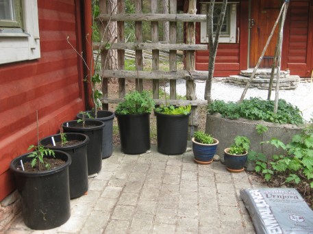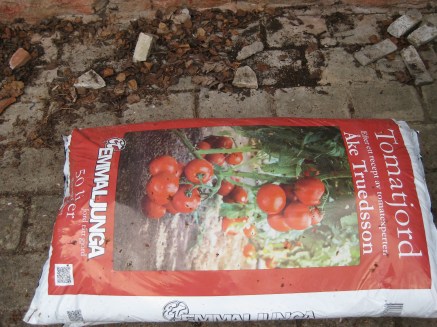 Här krävs nappatag! Med bilen nedlastad med nio säckar urnjord, tomatjord, kogödsel och blomplantor kommer jag hem från plantskolan och sätter igång, tacksam för starka vänners hjälp att lyfta de tunga jord- och gödselsäckarna ur bilen.