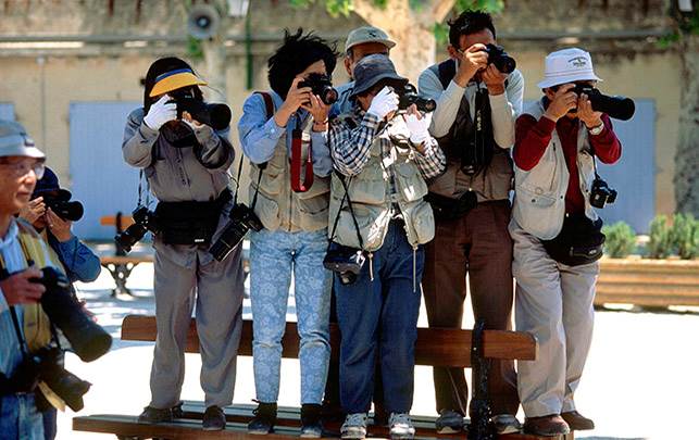En annan främmande sedvänja som enbart turister uppvisar är att ställa sig mitt i en smal gång i den trånga matbutiken och blockera möjligheten att ta sig förbi genom att hänge sig åt sina mobiltelefoner. Turisterna försjunker vid dessa tillfällen i ett slags trancetillstånd då de varken ser eller hör att andra kunder behöver komma fram.