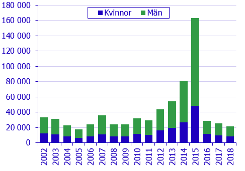 SCB:s (Statistiska Centralbyråns) statistik visar att den överlägset största andelen asylsökande är män. Det har ändrat den svenska demografin radikalt och inneburit att kvinnor från 2015 har förvandlats till en minoritet i Sverige, Detta efter att kvinnor har varit i majoritet i mer än 300 år, ända sedan folkbokföringen infördes 1686.