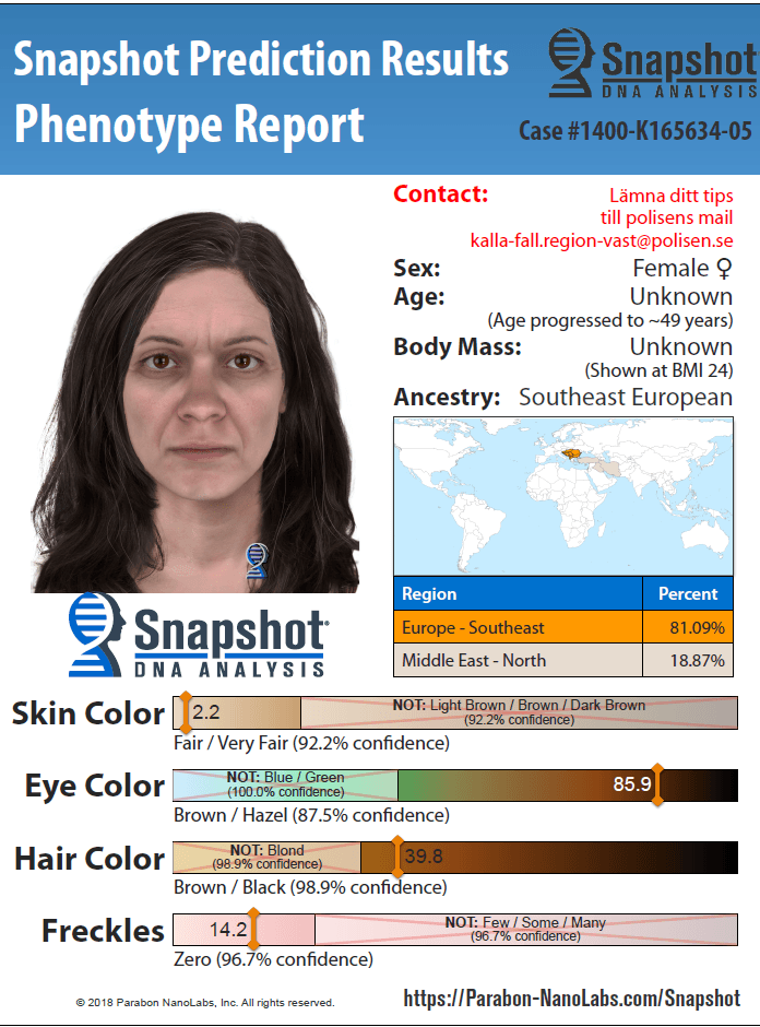 Mördaren har lämnat rikliga DNA-spår efter sig på mordplatsen, och utifrån dem kan Polisen se att det är en kvinna som har mördat Marie Johansson. Men hennes identitet går inte att hitta, helt enkelt för att hon inte har topsats vid något av de mindre brott hon har begått före och efter mordet. Hon finns alltså inte i Polisens register.