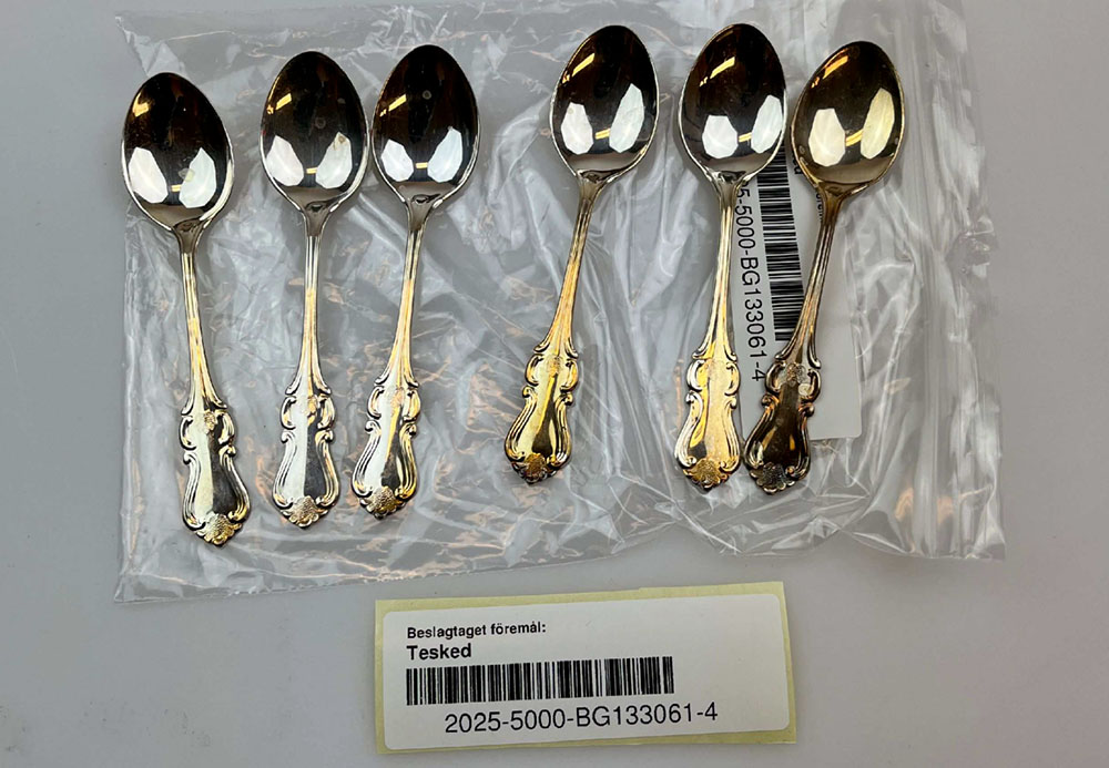 Minnesmedaljer och silverbestick packar Jennifer också ner i ryggsäcken. Sedan åker hon raka vägen till Kaplans butik på Biblioteksgatan, lämnar in de stulna föremålen och får 6 409 kronor betalt. Hon fångas på film när hon packar upp stöldgodset inför en värderingskvinna.